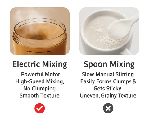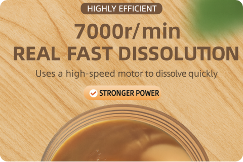 Wysokoszybki silnik natychmiast tworzy silny wir, w pełni rozmieniając proszek bez grudkowania.